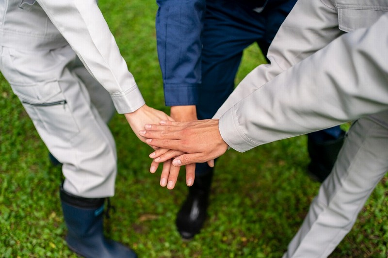 大幸株式会社は、明るい雰囲気の現場づくりを心がけております。 弊社には、国籍・年齢とわず幅広い作業員がいます。 皆で力を合わせて仕事をするためにも、明るく取り組める環境が大事です。 従業員同士の仲はよく、そのチームワークが施工の質向上につながっています。 また、明るい雰囲気は、長く働く上でも大きな魅力です。